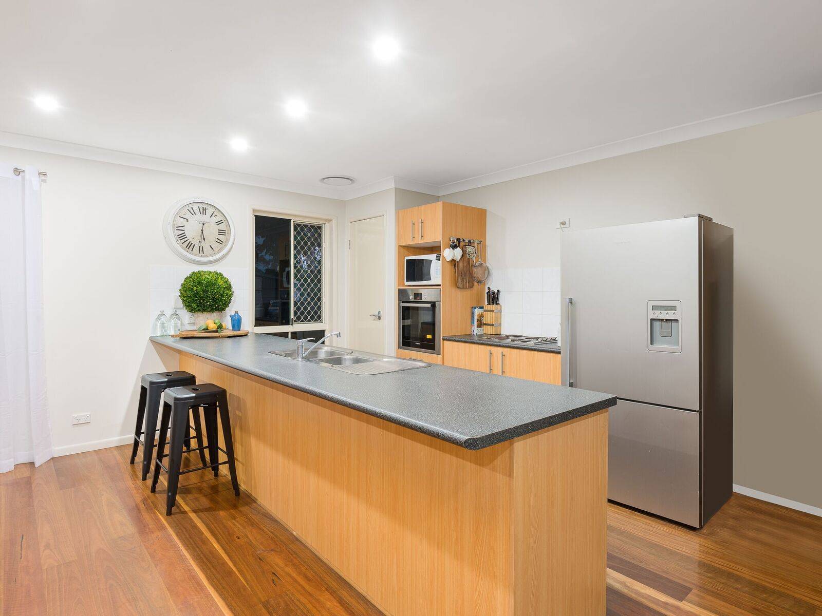 The kitchen in the main living area of the home is also fully equipped with quality appliances like the Bosch oven and ample bench and cupboard space. Just across from the kitchen is the bright and airy lounge room.