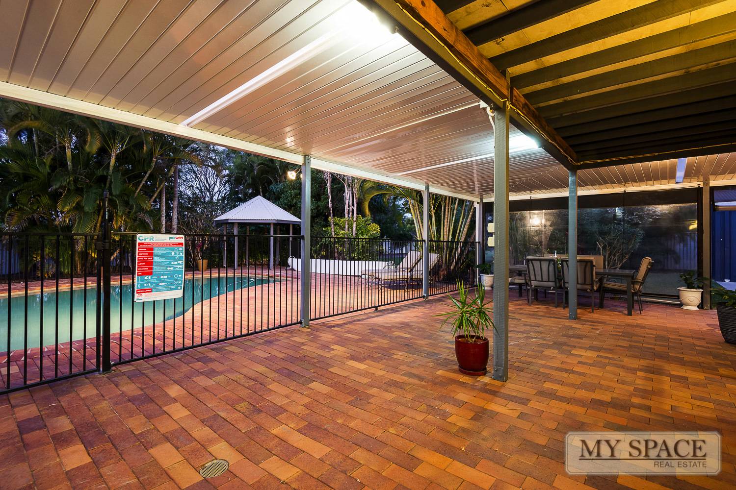 The paved undercover area outside is a perfect Entertainers Delight with many BBQ's to be enjoyed.  The in ground pool finishes off the space to feel like you are in a resort.